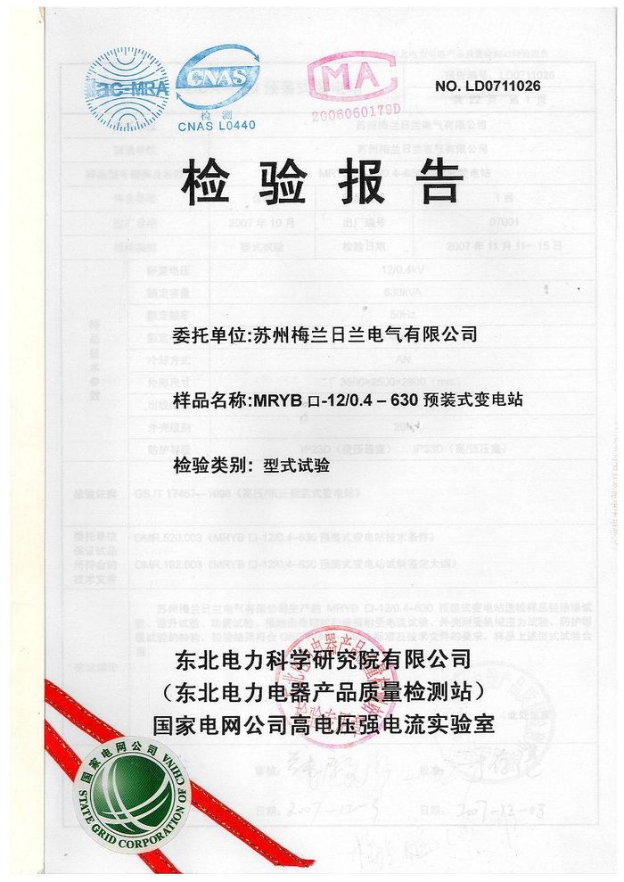 (成套)MRYB高壓預(yù)裝變電站資質(zhì)證書(shū)