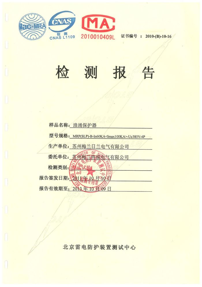浪涌 MRP60KA資質(zhì)證書(shū)