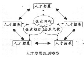 企業(yè)目標(biāo)、企業(yè)組織、企業(yè)文化是人才發(fā)展規(guī)劃的先決條件,這些內(nèi)容在企業(yè)發(fā)展規(guī)劃中需予以明確和規(guī)定。人才發(fā)展規(guī)劃本身由5個(gè)模塊組成,即:人才招募、績效評(píng)價(jià)、人才激勵(lì)、人才發(fā)展、人才退出。這5個(gè)模塊構(gòu)成了一個(gè)循環(huán),并與企業(yè)目標(biāo)、企業(yè)組織和企業(yè)文化之間發(fā)生相互作用。該模型的基本原理是Dr.W.Edwards Deming質(zhì)量管理PDCA循環(huán),P (Planning),做事要有計(jì)劃;D(Doing),按照計(jì)劃實(shí)施;C(Checking),檢查執(zhí)行情況;A(ACHEIg),經(jīng)驗(yàn)反饋與改進(jìn)。結(jié)合人力資源發(fā)展與管理工作的內(nèi)容,可以建立如圖所示的基本模型。