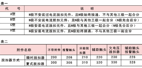 訂貨時必須寫明:產品名稱、型號、規(guī)格、極數、脫扣方式及附件名稱、保護特性、額定電流、額定剩余動作電流,訂貨數量。