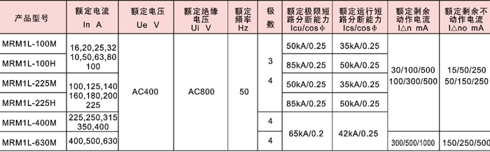 MRMIL斷路器外形體積與MRM1塑料外殼式斷路器規(guī)格相同,安裝具有較好的互換性;其額定剩余動作電流1△n及最大斷開時間根據實際情況現場可調。